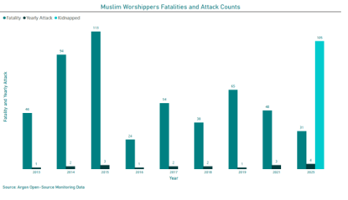 The timing of these attacks is not coincidental. Fajr, which occurs just before sunrise, presents the attackers with multiple tactical advantages, visibility is low, vigilance is minimal, and congregants are densely gathered in confined spaces. For the armed groups, this timing allows them to strike quickly, inflict maximum casualties, and withdraw before security forces can respond. These early-morning raids are not only a show of force but a calculated attempt to project operational reach into the heart of community life, undermining both faith and state authority.
