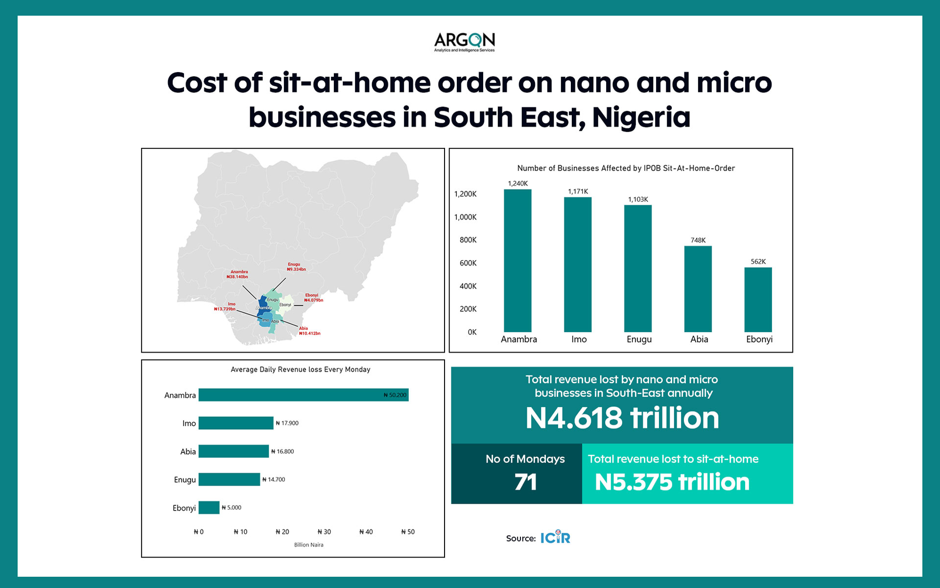 Between 2021 and 2025, the Southeast lost an estimated ₦7.6 trillion to shutdowns, disrupted logistics, and investor flight. At peak disruption, a single Monday sit-at-home erased ₦8 billion; transport networks alone bled ₦13 billion per day. Micro-businesses—the backbone of Igbo commerce watched incomes collapse by 50–70%. Even without enforced shutdowns, the perception that things could spiral again is enough to freeze capital, slow market activity, and deepen investor hesitation.