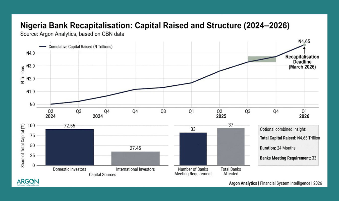 ₦4.65 trillion raised over 24 months, with 33 banks meeting recapitalisation thresholds, materially strengthening system resilience.