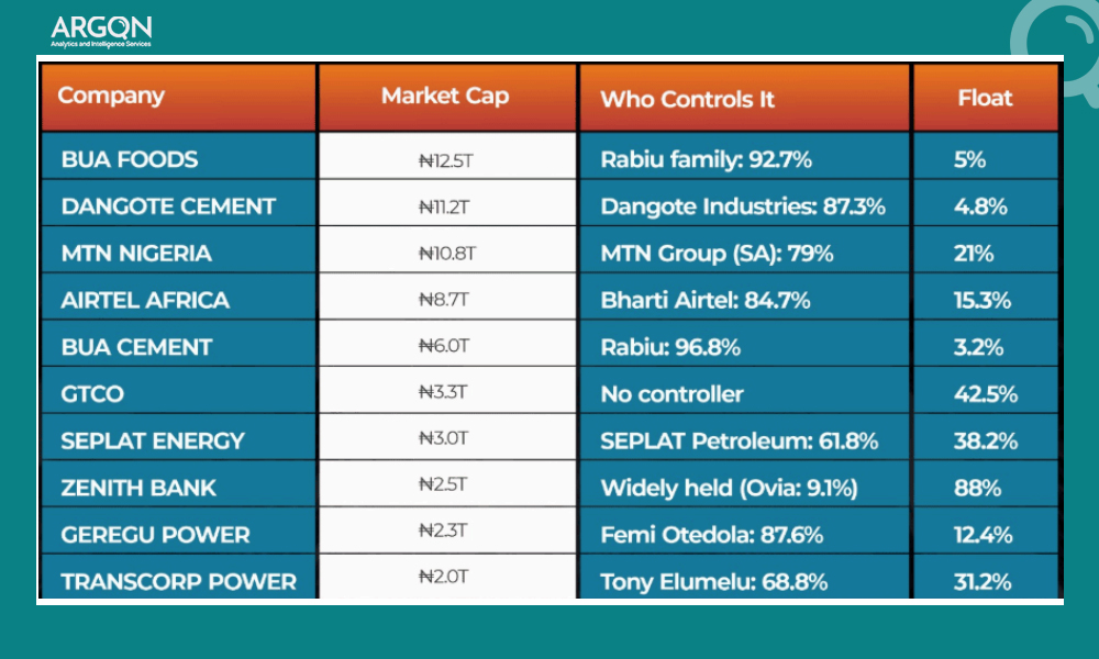 The binding constraint lies in extreme free-float compression at the top of the exchange. While Nigeria ranks among Africa’s largest equity markets by headline capitalisation, a substantial share of that value is functionally inaccessible to institutional capital. The top ten listed companies account for more than 60 percent of total market value, yet their average free float is barely above 25 percent. Among the largest industrial and consumer names, effective floats fall into single digits. In practical terms, tens of trillions of Naira in quoted equity behave less like public markets and more like partially accessible private assets.